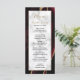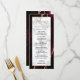 Dieses elegante, moderne Hochzeitsmenü besticht durch einen waschfarbenen bordeauxroten Hintergrund, der mit einem vergoldeten Imitat-Glitzer besticht. Der Text erscheint in goldfarbener Handschrift und schwarzer Kupferplatte auf einem Rechteck aus grauem und weißem Marmor. Das agate Design wird auf der Rückseite wiederholt.
