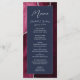 Dieses elegante, moderne Hochzeitsmenü besticht durch einen waschfarbenen bordeauxfarbenen Hintergrund, der mit silberfarbenem Glitzer aus Imitat besticht. Der Text erscheint in eleganter silbergrauer Handschrift und sans Serif-Schriftart auf einem marineblau blauen Rechteck. Das agate Design wird auf der Rückseite wiederholt.