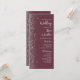 Das links Highlight dieses eleganten, modernen Hochzeitsprogramms zeichnet sich durch ein silbernes Imitat Glitzer-Design aus. Der anpassbare Text kombiniert silbergraues Handschriftenskript und sans serif Schriftart auf einem dunkelburgundischen Hintergrund.