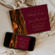 Die links Kulisse dieser eleganten, modernen Hochzeitseinladung besticht durch einen gelben, mit Imitaten vergoldeten Glitzer in Orange und Rost geschliffenen Wasserfarben. Der anpassbare Text kombiniert goldfarbene Handschrift, Copperplate und kursiven Schriftart auf bordeauxfarbenem Hintergrund. Auf der Rückseite ist ein passendes Orange- und Goldagatdesign zu sehen.