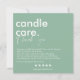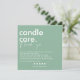 Steigen Sie mit dieser stilvollen und funktionalen Visitenkarte, die sich als Leitfaden für die Kerzenpflege und Dankeschön-Noten verdoppelt, Ihre Kerzenmarke auf. Mit einem weichen Lavendelhintergrund und einer sauberen weißen Typografie bietet diese Karte grundlegende Anleitungen zur Kerzenpflege und spricht Ihren Kunden herzliche Anerkennung. Es wurde für moderne Hersteller und kleine Unternehmen konzipiert und enthält Tipps für den sicheren und optimalen Kerzeneinsatz, eine sanfte Erinnerung, Kerzen von Kindern und Haustieren behalten, sowie eine schnelle Rückmeldung der Kunden. Das elegante Layout und die minimalistische Ästhetik machen es zu einem perfekten Beilage für Verpackungen oder Pop-up-Displays. Passen Sie Ihren Markennamen, Ihre Website oder Ihr Logo an, um ein zusammenhängendes und berufliches Kundenerlebnis zu schaffen.