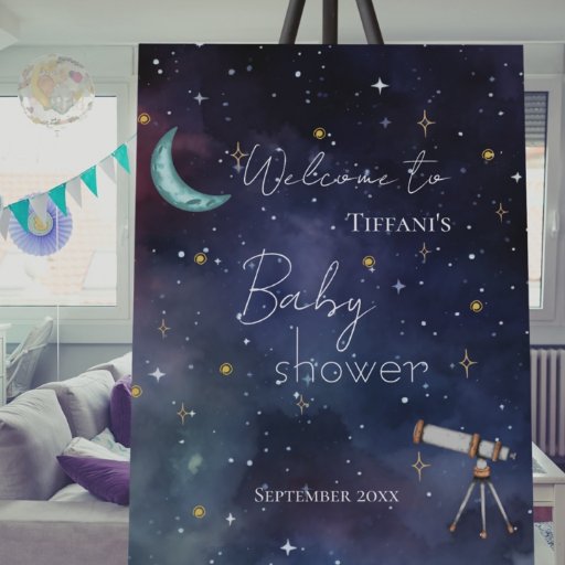 Set Sie mit unserer modernen Celestial Moon & Stars Einladung den himmlischen Ton für Ihre Babydusche. Vor einer ruhigen, blauen, sternenblauen Nachtkulisse mit weißen Sternen, einem strahlend hellblauen Mond, goldgelben Sternen und einem Teleskop lädt diese Einladung zu einer magischen Feier unter dem Nachthimmel ein. Mit dieser bezaubernden und stilvollen Einladung entspannen Sie in der Babydusche.