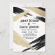 Diese gläserne und moderne Hochzeitsfeier lädt zum stilvollen und trendigen Paar ein. Es zeigt ein Imitat bedrucktes goldfarbenes Pinselmuster und einen schwarzen Pinselstrich in Schiefer auf weißem Muster. Auf der Rückseite ist ein großes Imitat mit goldlackiertem Pinselstrich in einer raven schwarzen Farbe. Es ist minimal, künstlerisch, chic, künstlerisch und hübsch!