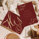 Moderne Chic Monogram Burgundy und Gold Hochzeit Einladung.
