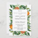 Feiern Sie Ihre Verlobung mit einem Party, das mit Zitrusfrüchten und Pflanzen gestaltet wurde. Dieses moderne und frische Design ist perfekt für Frühling und Sommer und sogar Frühfall. Das Design umfasst Monogramm-Initialen an der Spitze und Veranstaltungsinformationen gerahmt mit wunderschönen Orangen, hellgrünen Blätter und Orangenblüten.
