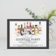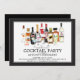 Einzigartige Cocktail Retirement Party Einladung mit einer Aquarellcocktail-Szene mit Spirituosen & Drinks Set auf weißem Hintergrund mit schwarzem Rahmen.