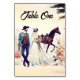 Dieses lustige Design zeigt eine Braut und einen Bräutigam, die ein Pferd im Hintergrund sehen.