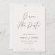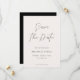 Moderne und klassische Hochzeit Sichern Sie das Datum mit handgeschriebenem Typografie-Script, cremefarbenem Hintergrund und schwarzem Backer. Passen Sie es mit Ihren eigenen Hochzeitsinformationen an. Eine zeitgenössische Hochzeitsankündigung für moderne Paare.