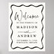 Begrüßen Sie Ihre Gäste mit zeitlosem Charme und nutzen Sie dieses moderne Blue Wavy Frame Wedding Welcome Sign Poster. Mit seinen Namen und Hochzeitsdetails in schwarzem Schriftzeichen und weicher Creme bietet dieses Design den perfekten Mix aus Retro und moderner Eleganz. Ein gewagter schwarzer, gewellter Rahmen umrahmt Ihre Informationen und schafft so einen stilvollen Brennpunkt für Ihren Einstieg, Ihre Zeremonie oder Ihren Empfang. Dieses individuell gestaltbare Hochzeitszeichen eignet sich hervorragend für moderne Hochzeiten, Feiern mit schwarzer Krawatte und elegante Minimalveranstaltungen. Wählen Sie aus, ob Sie es professionell drucken lassen möchten oder wählen Sie die Option zum sofortigen Herunterladen, um es bequem auf der Zuhause zu drucken.