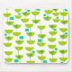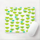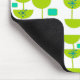 Dieses Mauspad hat ein modernes Design aus grünen Halbkreisen, die wie Tassen mit türkisfarbenen Sternexplosionen und Rechtecken aussehen.