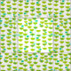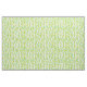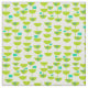 Dieser Stoff hat ein modernes Design von grünen Halbkreisen, die wie Tassen, die zusammen mit türkisfarbenen Sternexplosionen und Rechtecken aufgestellt sind, aussehen.