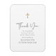 Dieses einfache und klassische Design besteht aus Serifen und kursiver Schrift-Typografie auf einem schlichten, weißen Hintergrund mit einem Imitat goldenen Kreuz.