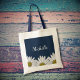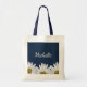 Moderne rustikale Totentasche mit weißem Dekor auf marineblau-blauem Hintergrund. Mit dem weißen, anpassbaren Skripttypografie-Schriftzeichen können Sie Ihren eigenen Namen hinzufügen. Ideal, um Ihren Accessoires einen botanischen Stil hinzuzufügen.