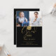 Eine stilvolle Graduiertenparty mit zwei besonderen Fotos und stilvoller Goldtypografie auf schwarzem Hintergrund. Entwickelt von Thisisnotme©