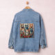 Moderne Darstellung von sechs Katzen und Rose Jeansjacke