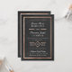 Einladungen zum Hochzeitsfeiern auf einem Imitat Rose Goldfolieneffekt und Weißtext auf einem subtil gemusterten schwarzen Hintergrund. Klassische Skript- und Serif-Schriftart. Ein Deko-Effekt rund um den Hochzeitstag. Bitte beachten Sie, dass die Goldfolie der Rose ein Druckeffekt ist - in der Einladung wird keine metallische Folie verwendet.