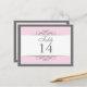 Traditionell und dennoch zeitgemäß ist der Fokus dieser schönen Tischkarte. Das Untergeschoss besteht aus weichem Rosa, das von Weiß und Holzkohlegrau umgeben ist. Das weiße Fenster enthält die Tabelleninformationen. Doppelseitige Konstruktion für Komfort aus jedem Winkel. Erhältlich in alternativen Farben mit passenden Produkten. com com