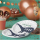 Moderner Dinosaurier mit entzückendem Polkapunktentwurf ist für ein niedliches kleines Dinosauriergeburtstags-Party perfekt! Dieser Teller ist kundengerecht, also können Sie Ihren eigenen Text addieren.