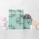 Dieses Verpackungspapier hat ein modernes Design von Mitte des Jahrhunderts, das wie eine DNA-Helix aussieht, mit einer vertikalen Linie, die durch sie verläuft, mit kleinen Linien, die an den Enden Kreise haben.