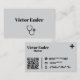 Präsentieren Sie Ihren Arzt mit Stil mit dieser schlanken und beruflichen Visitenkarte. Das Design zeichnet sich durch einen sauberen grauen Hintergrund mit fett schwarzer Typografie für den Namen Victor Ender und Titel Doctor aus. In der rechten oberen Ecke befindet sich ein minimalistisches schwarzes Kreuz-Symbol, während auf der links Seite ein scannbarer QR-Code für den schnellen Zugriff auf Kontakt- oder Profilinformationen enthalten ist.