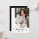 Feiern Sie Ihren Absolventen mit dieser modernen Foto Abschluss Ankündigung und Einladung in einem Schwarz-Weiß-Schema. Mit einer einzigartigen Foto-Form mit einer gekrümmten Kante an der Vorderseite, hat diese Abschluss-Ankündigung auch ein gewagtes modernes Drehbuch "graduate" und anpassbaren Text für Name und Jahr. Auf dem schwarzen Rücken finden Sie Einladungstext und ein passendes Skript "Join us to Fest the grad!" Diese originelle Graduiertenankündigung und Einladung von Lea Delaveris Design ist Teil einer Sammlung von Graduierungsankündigungen, Party-Vorräten, Dekoration, Geschenken und mehr. Finden Sie weitere Stile und Farben in der Sammlung. Auch als Digital Abschluss Ankündigung Download!