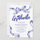 Moderne Doodle Blue Bow Graduation Party Einladung