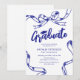 Feiern Sie den Meilenstein Ihres Absolventen mit diesen Einladungen zur Abschlussfeier, die eine zeitlose weiße Kulisse mit einem modernen blau gezeichneten Bogen und einer Schleife verbinden. Zusammen mit einer anpassbaren Textvorlage stellen diese Einladungen eine schöne Möglichkeit dar, dieses lebensverändernde Ereignis zu begehen.