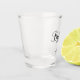 Modernes Personalisiertes Bridesmaids Shot Glass mit personalisiertem Bräunungsnamen im modernen kalligraphischen Schriftart-Stil mit Titel und Hochzeitsdatum im modernen sans Serif Schriftart Stil. Auch perfekt für Trauzeugin, Blume Mädchen, Mutter der Braut, Trauzeuge, Trauzeuge, Vater der Braut und mehr.