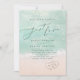Schöne türkisfarbene abstrakte Aquarell glitzernde Ozeanwelle und Herzen im Hintergrund des Sandstrandes, mit stilvollem Drehbuch und eleganten Serif-Schriftart, modern und einfach. Grosses nichts extravagant nur Liebe Hochzeit Einladung für intime nautische Beach Hochzeit, tropische Hochzeit in Urlaubsort, Küste Ozean Thema Hochzeit im Sommer.
