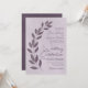 Diese Hochzeitseinladung besticht durch ein modernes Design mit einem richtig begründeten Text und handbemalten Blätter in Lila- und Pflaumentönen. Das Schriftzeichen zeichnet sich durch einen modernen Script-Schriftart aus, und der marbile, staubige lila Hintergrund verleiht der Schrift Textur und Tiefe. Einfach, rustikal, einzigartig und chic, ist diese Einladung eine großartige Möglichkeit, klassische Eleganz mit zeitgenössischem Stil zu verbinden.