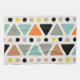 Ein Kunstmuster im Stil der 50er Jahre mit Dreiecken und Punkten in vielen Farben wie Orange, Gold, Gelb, Himmelblau, Schiefergrau und Schwarz.