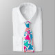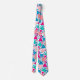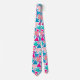 Krawatte in einem modernen geometrischen Mosaik aus umrissenen Dreiecken in den Farbtönen Türkis / Pfau, Korallen, Pfirsich und Fuchsia auf weißem Hintergrund