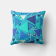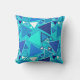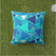 Modernes geometrisches Mosaik aus umrissenen Dreiecken in den Schattierungen Kobalt, Marine, Cerulean und Himmelblau auf einem mittelkerulenblauen Hintergrund Außenkissen