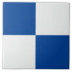 Diese minimalistische Keramik-Kachel weist ein modernes kariertes Muster in dunkelblau und weiß auf.