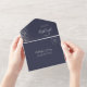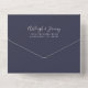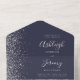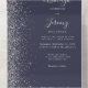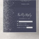 Die links Kulisse dieses eleganten und modernen All-in-One-Hochzeitseinladens und UAWG besticht durch einen silbernen Imitat-Glitzer. Der anpassbare Text kombiniert silbergraue, weißliche Handschrift, Kupferplatte und kursiv Schriftart auf dunkelblauem Hintergrund. Die Rücksendeadresse erscheint auf der Außentafel und auf der Rückseite der abnehmbaren RSVP-Karte in silbergrauem Text auf massiv dunkelblau.