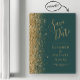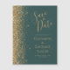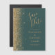 Die links Hand dieser modernen Hochzeitsfeier bewahrt das Datum der Magnetkarte mit einem vergoldeten Imitat Glitzer Rand. Der anpassbare Text kombiniert eine helle, goldfarbene Handschrift, Copperplate und kursivem Schriftart auf einem dunkelgrünen Hintergrund.