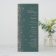 Das elegante, moderne Hochzeitsprogramm besticht durch seine links Optik und das Design des Glitzer in der Rose Gold Imitate. Der individuell anpassbare Text verbindet blassfarbene Handschrift, Copperplate und kursivem Schriftart auf einem dunkelgrünen Hintergrund.