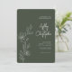 Moderne Dunkelmoosgrüne Foliage Kontur Hochzeit Einladung