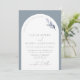 Moderne dusty Blue Arch Botanical Script Wedding i Einladung