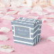 Moderne, staubblaue Gastgeschenk Hochzeit-Boxen mit weißen Streifen auf einem staubblauen Hintergrund. Diese staubblauen Gastgeschenk Hochzeiten können Sie ganz einfach mit Ihren Hochzeitsdetails personalisieren. Unsere modernen staubblauen Gastgeschenk Hochzeiten-Boxen sind perfekt für Ihre elegante, staubblaue Hochzeitsfeier. Diese personalisierten Dankeschön können Sie Gefälligkeitsboxen an andere Anlässe, wie z.B. Brautduschen oder Babyduschen, anpassen.