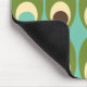Dieses Mauspad hat ein modernes Design grüner Ovale, in denen sich Ovale und Kreise befinden, sodass sie wie Eier in Retrofarben Rot, Gelb, Blau, Grün, Braun und Orange auf einem hellblauen Feld aussehen.