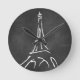 Ein moderner, handgezeichneter Eiffelturm auf einem Kalkbrettboden schmückt diese Wanduhr und macht sie zu einem klassischen Zuhause-Accessoire.