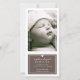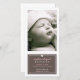 Ideal für Ihr neues Mädchen. Mit einer knusprigen, weißen Grenze, einem Hintergrund aus weichem Mocha-Braun, hübschem Rosa und Weiß und einem kleinen Herz verziert, ist diese einfach bezaubernde Geburtsankündigung modern und rein. Stellen Sie Ihre neue Ankunft mit einem süßen Foto vor und alle wichtigen Details, die auf dieser Hochformat-Fotokarte angeordnet sind, um einen schönen, für sie unschätzbaren Schatz zu erhalten.