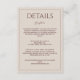 Erstellen Sie eine stilvolle und zeitlose Hochzeit mit dieser modernen, minimalistischen Detailkarte in sanftem Braun. Ihr sauberes Design, elegante Typografie und neutrales Farbthema machen sie perfekt für Paare, die einen einfachen, minimalen und stilvollen Look wünschen. Einfach und doch raffiniert, setzt diese Einladung den Ton für eine unvergessliche, elegante Hochzeit. Perfekt, um wichtige Hochzeitsdetails zu teilen und dabei einen modernen, stilvollen und klassischen Look beizubehalten.