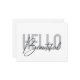 Modernes, einfaches, minimales typografisches Design eines Sprichworts "Hello Beautiful" in Grautönen. Coole, urbane, trendige grafische Vektorkunst mit handgeschriebener Typografie.