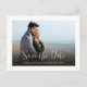 Eine elegante, einfach gerettet Hochzeitskarte mit einer einfachen, minimalistisch staubigen Rose, schlichtes Foto aus Verlobung, ein mehrFoto-Paar-Verlobung, eine hochzeit-moderne, schlichte Schriftart, eine Verlobung-Foto-Postkarte, ein moderner Kalligraphiepinsel-Save the Date, eine minimalistische Kalligrafie-Schrift, eine klassische Pinselvorlage, eine preisfreundliche Einstellung