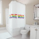 Modernes, farbenfrohes, lebendiges typografisches Design des Sprichworts "Liebe gewinnt" in Regenbogenfarben. Einfache, kühne, lebendige und urbane grafische Kunst.