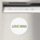 Modernes, farbenfrohes, lebendiges typografisches Design des Sprichworts "Liebe gewinnt" in Regenbogenfarben. Einfache, kühne, lebendige und urbane grafische Kunst.