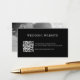Moderne Wedding Website Enclosure Card mit einem einfachen, minimalistischen Layout mit QR-Code und den Anweisungen in links Ausrichtung. Auf der Rückseite ist dein LieblingsFoto. Der gesamte Text ist weiß über einen schwarzen Hintergrund und kann durch Anklicken des Buttons "Anpassen" auf eine beliebige Farbe geändert werden.