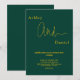 Dieses elegante, grüne und goldene Hochzeitsangebot eignet sich perfekt für eine moderne Hochzeit, das schlichte Design zeichnet sich durch elegante goldene Kalligraphie auf grünem Hintergrund aus.